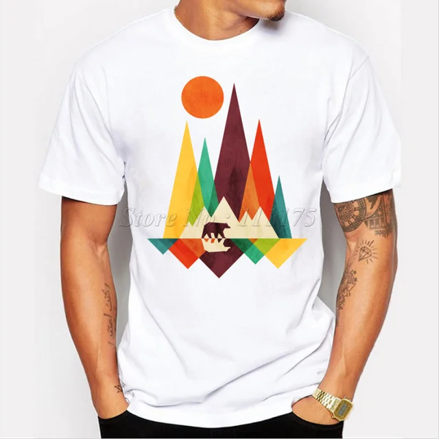 2019 New Arrival Simple Mountain And Bear Design Men S Fashion T